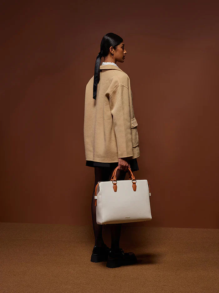 The boxy tote offers generous space and a refined shape for all your essentials.